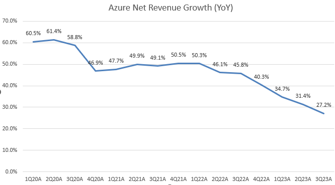 - Microsoft’s AI initiatives, including the availability of OpenAI’s GPT-4 in Azure, OpenAI Service and the introduction of Azure AI Studio can potentially drive significant growth and expand valuation multiples.