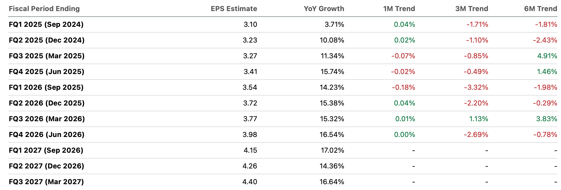 And here are the EPS trends.