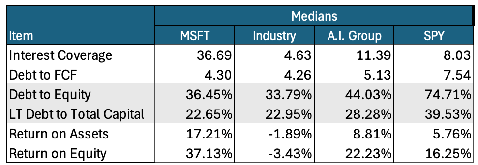 And based on standard practice, I compare MSFT to the holdings of the SPDR S&P 500 ETF (SPY). I also sow industry medians. In this case, we’re looking at the Systems Software industry.