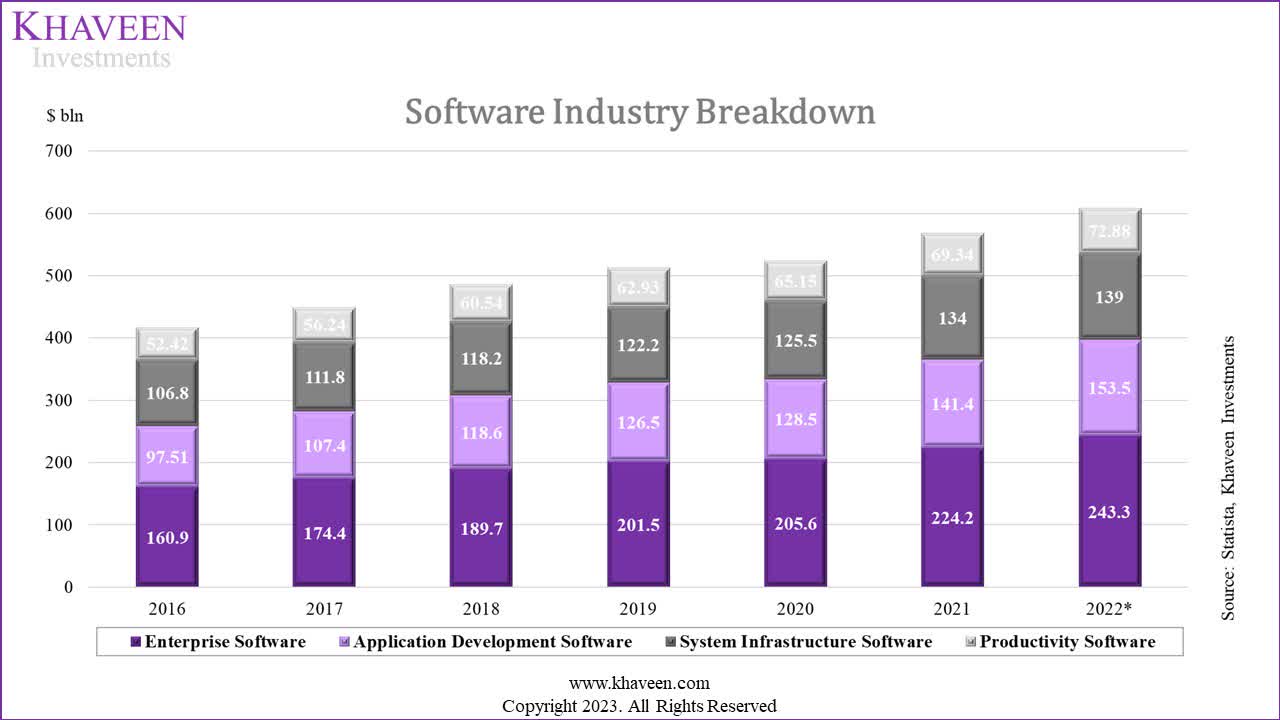 We believe Microsoft leads in Enterprise Software, Application Development Software, and Productivity Software, making up 77.2% of the market due to its diverse AI solutions ranging from virtual assistants to advanced tools as well as its integration with OpenAI’s AI models, particularly the superior GPT-4, setting it apart from rivals like IBM. Moreover, we see Microsoft’s strength in seamlessly integrating AI-powered solutions throughout its extensive product ecosystem.