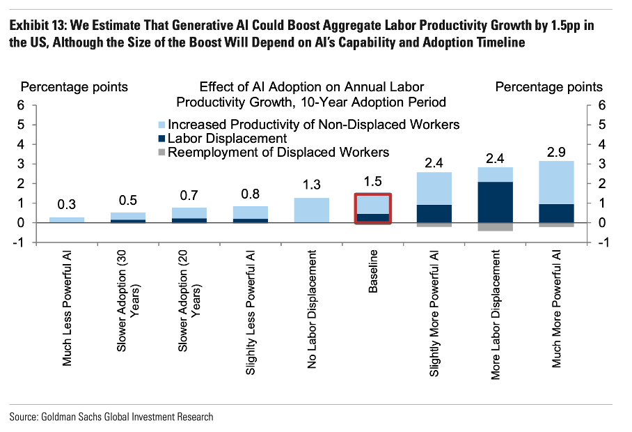 And Goldman Sachs for example is cautiously optimistic that AI will contribute to GDP growth and increase productivity in the years to come.