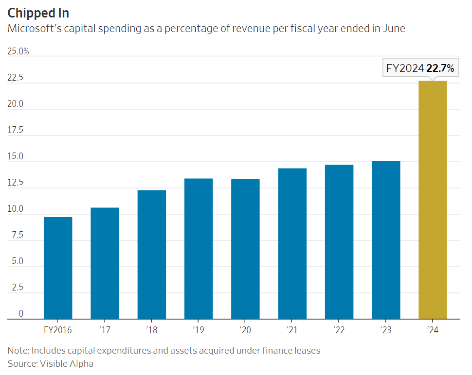 • Microsoft investors are likely weighing the AI monetization opportunities against the potential of overinvesting in AI capacity.