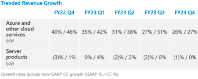 The following chart outlines Microsoft’s Intelligent Cloud growth trend up to 4Q23.