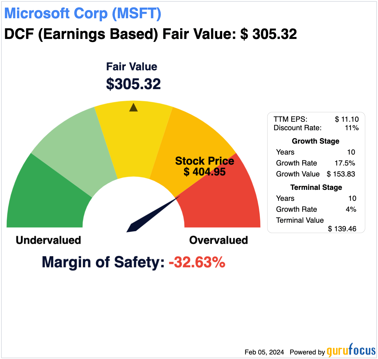 While this presents a negative margin of safety of around 33%, this is considerably negated by the high level of investor sentiment, the strong business model focused on continued growth and long-term outlook for Microsoft, indicated by the Activision Blizzard acquisition.
