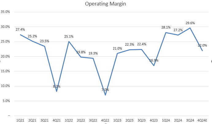 NFLX has been steadily improving its operational efficiency and is expected to continue expanding its operating margin in FY2025. In my last analysis, I highlighted that the company achieved a record operating margin of 28.1% in 1Q FY2024. In 3Q FY2024, the company set a new record, reaching 29.6%.