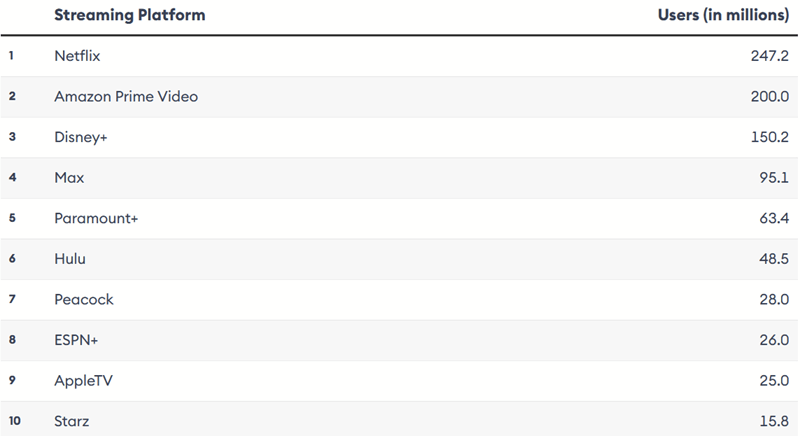 - The company leads against competition from other streaming platforms like Disney Plus, Peacock, and HBO Max.