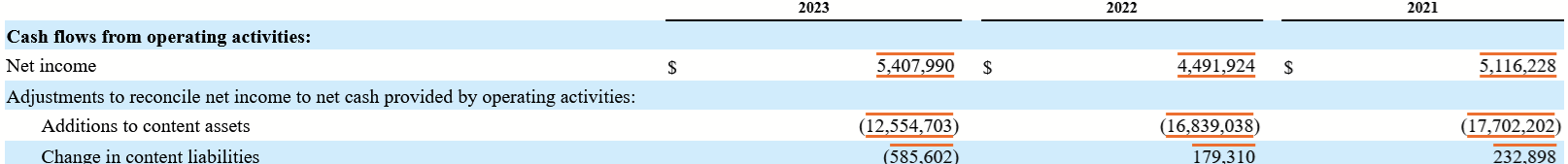 Notice that about $3.7 billion was spent on “Additions to content assets,” which basically the licensing fees they pay for IP.
