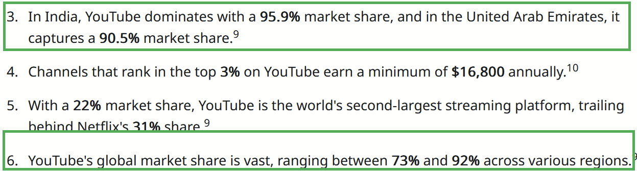 These data also show YouTube performing very well in international markets where Netflix would hope to grow more. Moreover, in their 2023 Form 10K, they note: