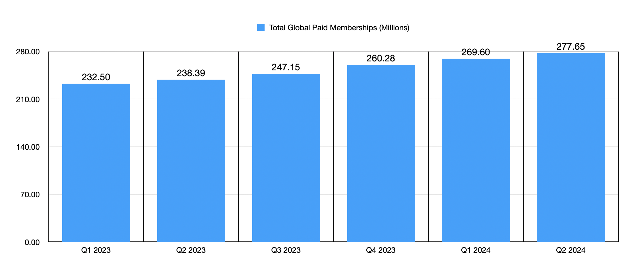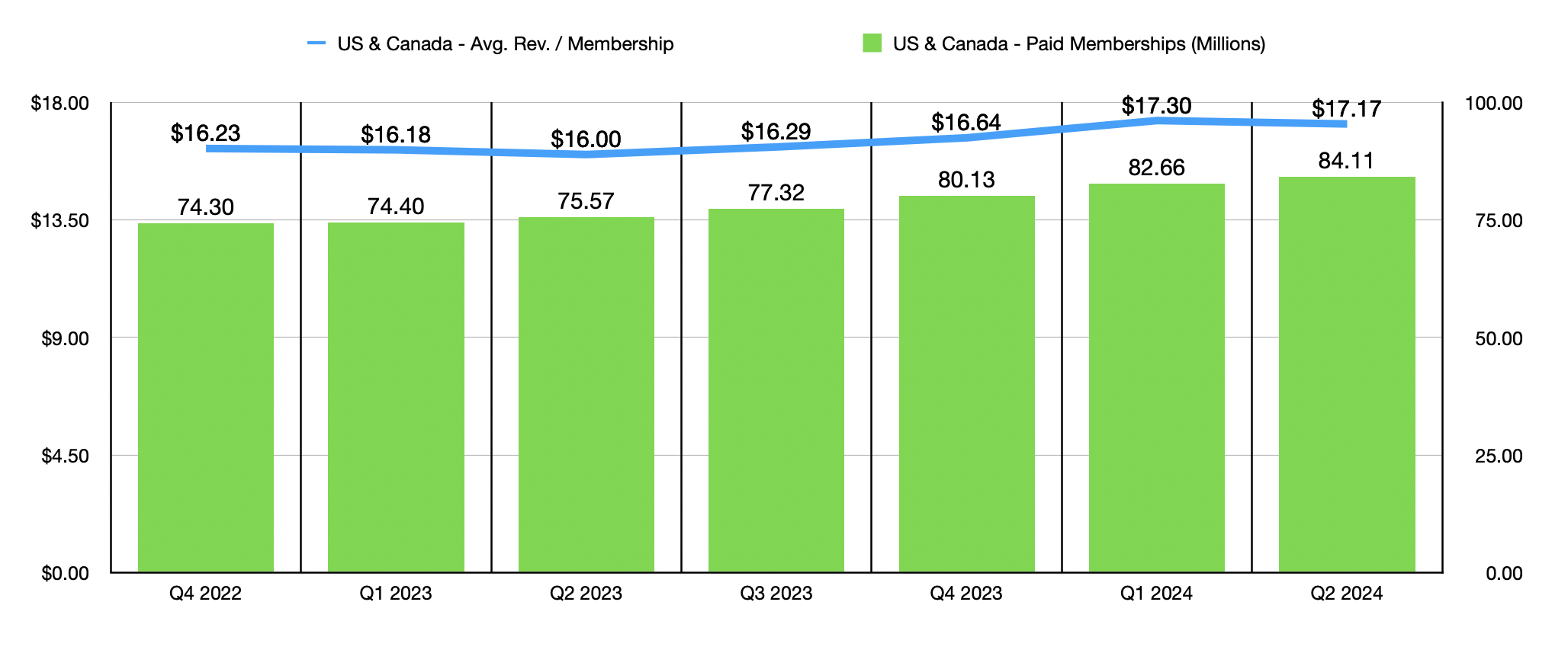 By far, the biggest driver behind this increase was a growth in the number of paid memberships. In the US and Canada, which is responsible for 44.9% of the company’s overall sales, paid memberships grew to 84.11 million. That is 1.45 million above the 82.66 million reported in the first quarter of 2024. And it’s also a whopping 8.54 million above the 75.57 million that the company had one year ago. This is not to say that everything has been great. While average revenue per membership per month of $17.17 is comfortably higher than the $16.00 reported one year earlier, the reading reported for the second quarter of the year was down from the $17.30 reported in the first quarter.