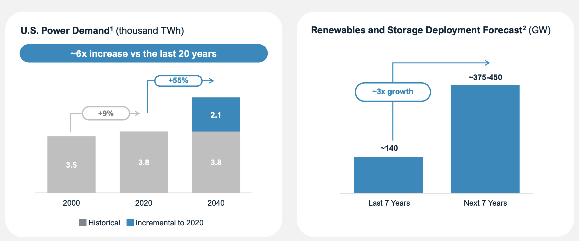 The company saw 9% increase in power demand from 2000 to 2020 and is forecasting 55% growth to 2040. The company expects 2040 demand to be 5900 TWh up from 3800 TWh in 2020. More importantly, renewables and storage are expected to be a growing portion of the power sector, where NextEra is building out aggressively.