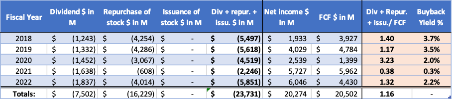 Nike’s dividends have risen sharply over time due to sharply higher earnings and partly due to share repurchases. Share buybacks are a tax-efficient method of returning capital to investors. It also reduces the number of shares outstanding and buybacks in the open market increase demand and reduce the supply of shares. This is an ideal recipe for share price appreciation. In 2022, the share buyback ratio was 2.2%.