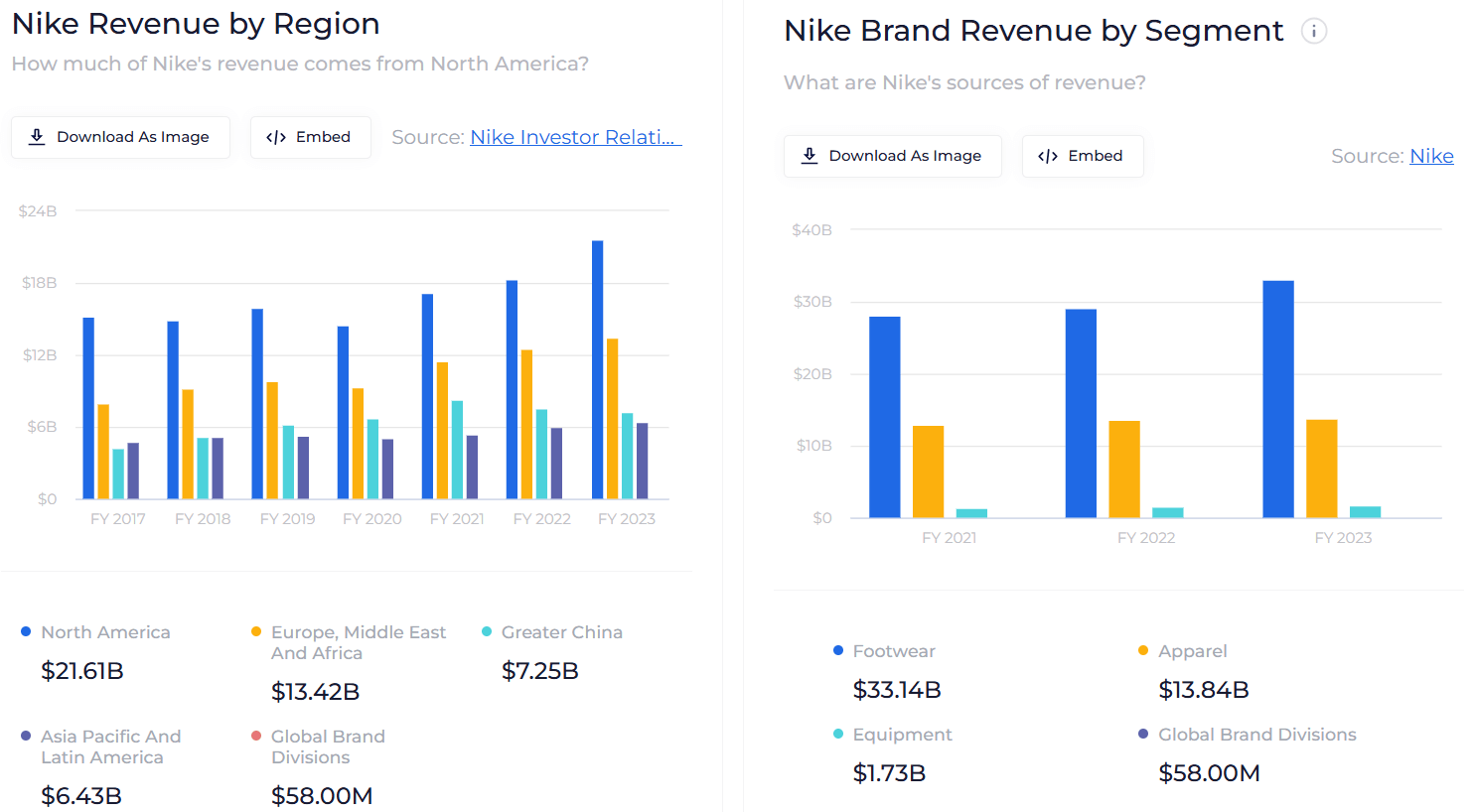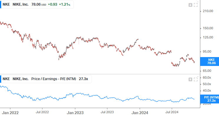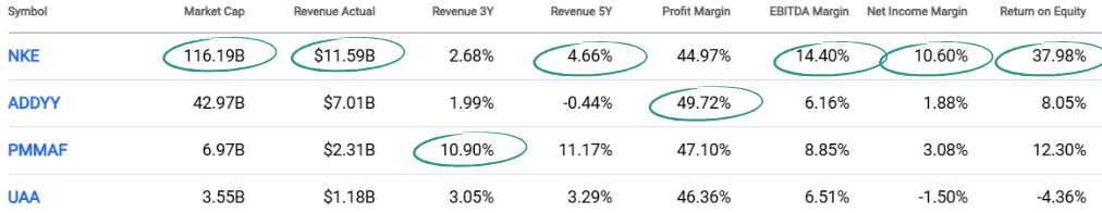 • Nike has the best financial fundamentals among its competitors, and the most attractive valuation in the last 3 years.
