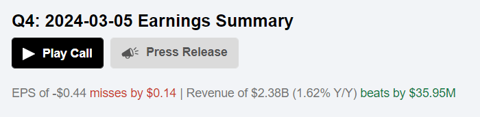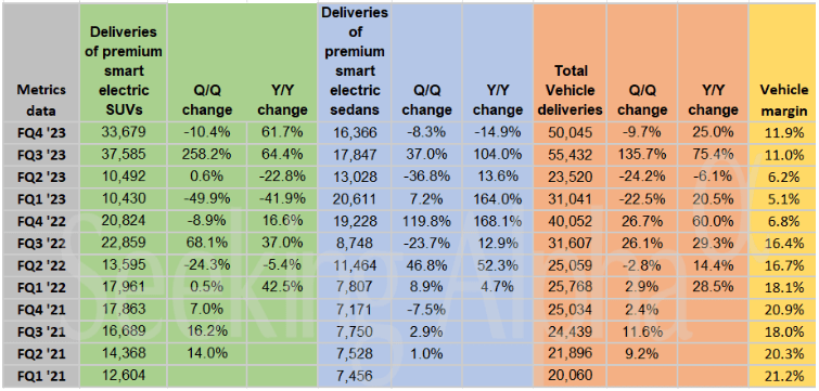 • NIO reported for Q4 FY2023, beating the quarterly consensus estimates regarding sales (surprise of 1.54%), but missing on the bottom line (surprise of -47.38%).