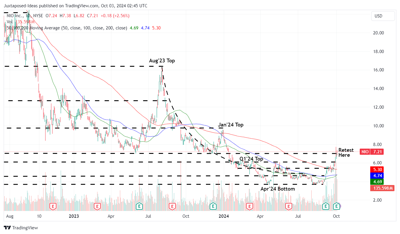 Since then, NIO has continued to lose -19% of its value through the end of August 2024, worsened by the painful market rotation then, with the recent vertical recovery attributed to the Chinese government’s numerous stimulus measures “aimed at supporting the economy’s” recovery.