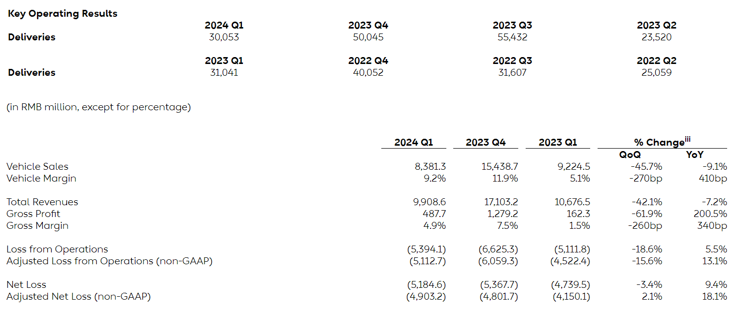 As a result, NIO’s operating losses for Q1 2024 were -$747.1 million, a 5.5% YoY increase and an 18.6% decline from Q4 2023 – I think this could be considered a success as it means that the company has managed to cut its quarterly loss by almost $140 million or over 15% on an adjusted basis, even though its revenue was hurt considerably, as we saw above.