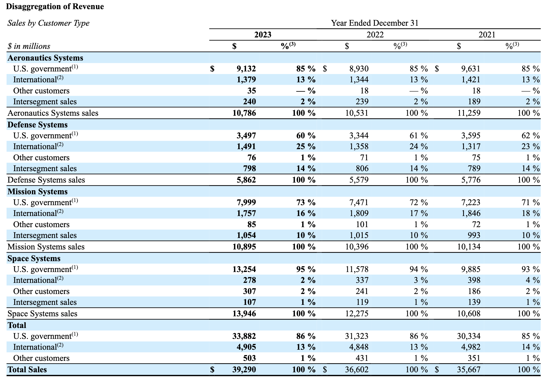 Northrop Grumman’s revenue disaggregated by segment and customer type (FY23 10-K, Northrop Grumman)