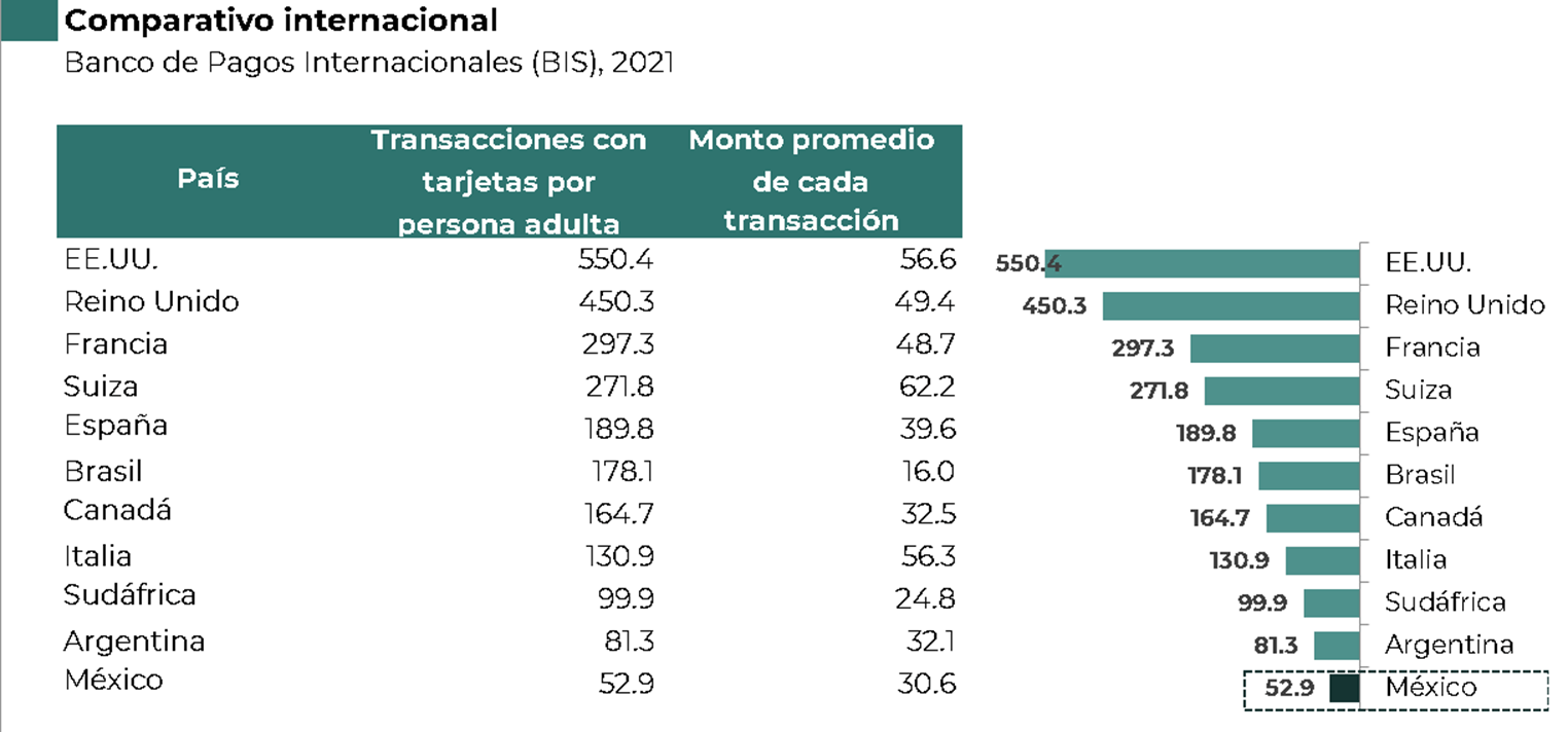 Although Nu’s products are not revolutionary at all, they are in a highly favorable context due to the low level of banking in Latin America and the high use of cash in these countries. In the following image, extracted from a report by the National Banking and Securities Commission of Mexico (page 74), we can see that in 2021 the average American citizen made 550 transactions a year with cards, while in Brazil only 178 were made and in Mexico 53. This scandalous difference in transactions translates into a revenue opportunity, since behind each purchase made with a card, there are commissions that are taken by the card-issuing bank and the payment processing network.