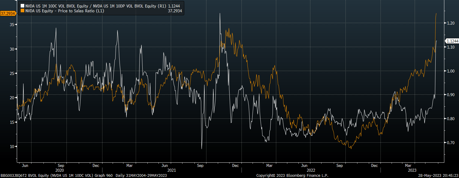 NDVA vs Call-Put Option Volatility Ratio (Bloomberg)