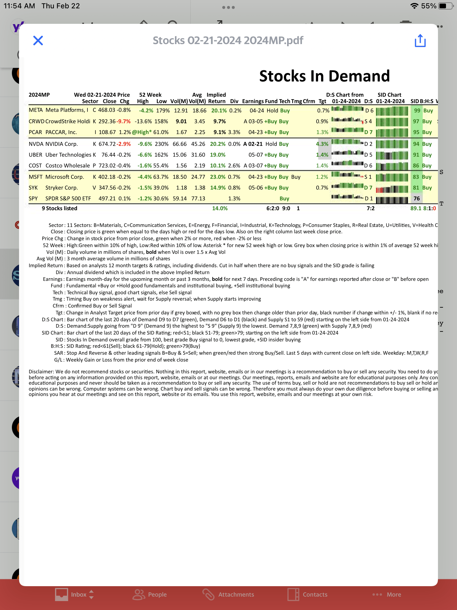 Disclaimer: We are not investment advisers and we never recommend stocks or securities. Nothing on this website, in our reports and emails or in our meetings is a recommendation to buy or sell any security. Options are especially risky and most options expire worthless. You need to do your own due diligence and consult with a professional financial advisor before acting on any information provided on this website or at our meetings. Our meetings and website are for educational purposes only. Any content sent to you is sent out as any newspaper or newsletter, is for educational purposes and never should be taken as a recommendation to buy or sell any security. The use of terms buy, sell or hold are not recommendations to buy sell or hold any security. They are used here strictly for educational purposes. Analysts price targets are educated guesses and can be wrong. Computer systems like ours, using analyst targets therefore can be wrong. Chart buy and sell signals can be wrong and are used by our system which can then be wrong. Therefore you must always do your own due diligence before buying or selling any stock discussed here. Past results may never be repeated again and are no indication of how well our SID score Buy signal will do in the future. We assume no liability for erroneous data or opinions you hear at our meetings and see on this website or its emails and reports. You use this website and our meetings at your own risk.