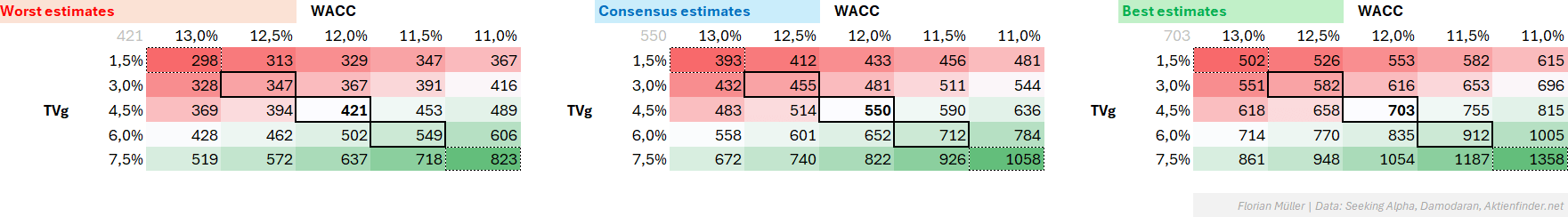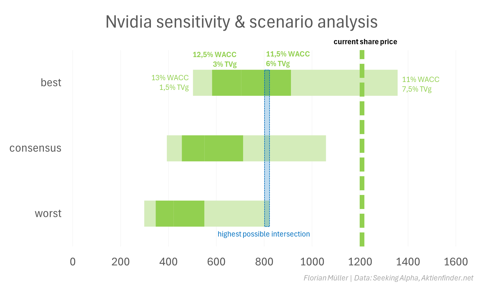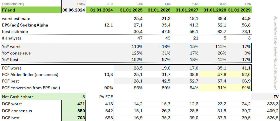• Earnings estimates for Nvidia Corporation are all over the place, leading me to translate them into scenarios and applying sensitivities.