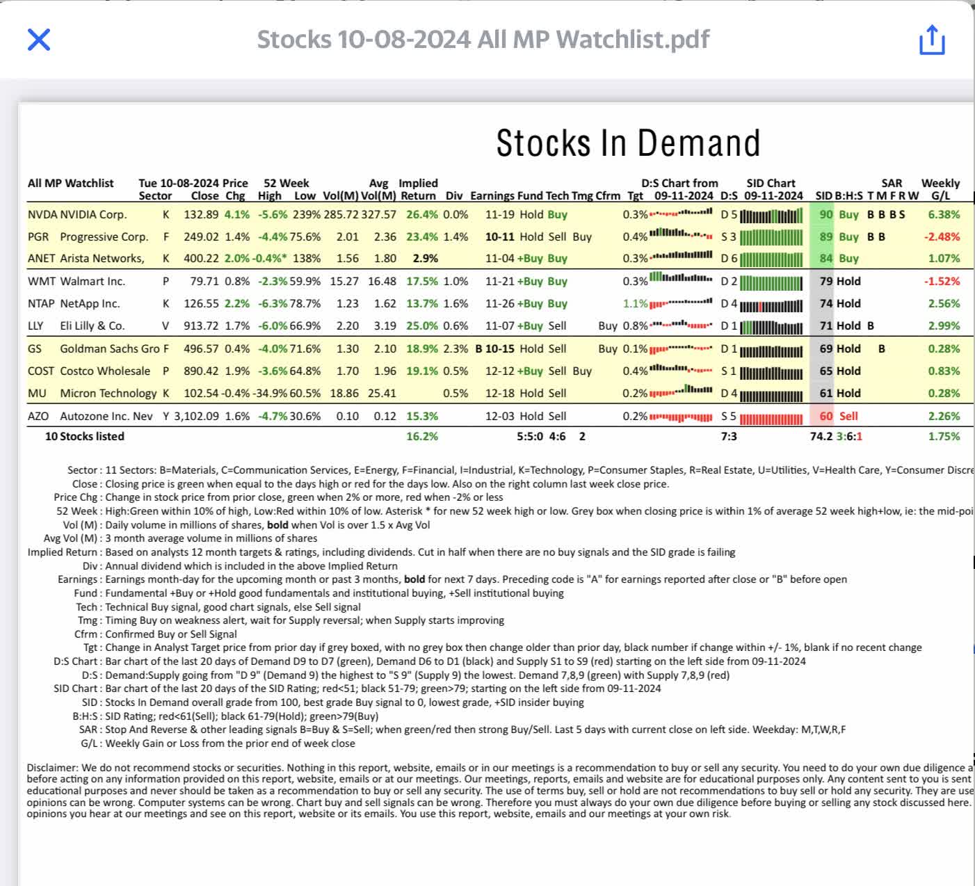 Disclaimer: We are not investment advisers and we never recommend stocks or securities. Nothing on this website, in our reports and emails or in our meetings is a recommendation to buy or sell any security. Options are especially risky and most options expire worthless. You need to do your own due diligence and consult with a professional financial advisor before acting on any information provided on this website or at our meetings. Our meetings and website are for educational purposes only. Any content sent to you is sent out as any newspaper or newsletter, is for educational purposes and never should be taken as a recommendation to buy or sell any security. The use of terms buy, sell or hold are not recommendations to buy sell or hold any security. They are used here strictly for educational purposes. Analysts price targets are educated guesses and can be wrong. Computer systems like ours, using analyst targets therefore can be wrong. Chart buy and sell signals can be wrong and are used by our system which can then be wrong. Therefore you must always do your own due diligence before buying or selling any stock discussed here. Past results may never be repeated again and are no indication of how well our SID score Buy signal will do in the future. We assume no liability for erroneous data or opinions you hear at our meetings and see on this website or its emails and reports. You use this website and our meetings at your own risk.