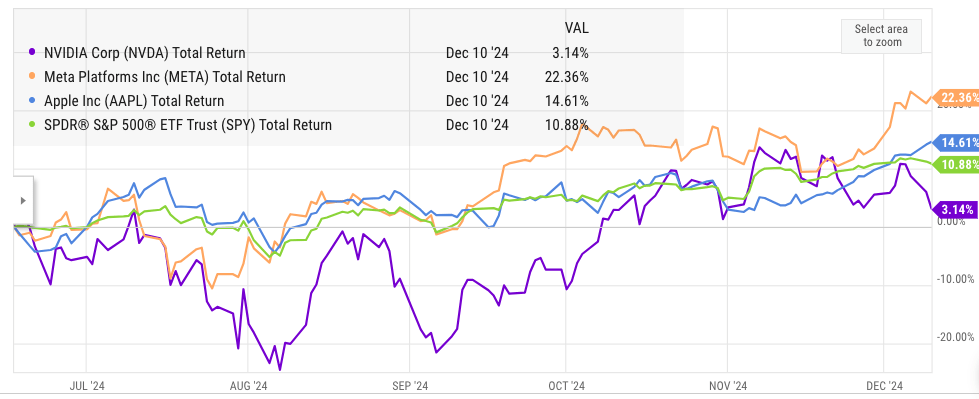 The earnings growth for the company is strong, but most of this is already priced in as the stock trades at a premium compared to other big tech companies. The market cap of Nvidia is close to $3.5 trillion, which reduces the upside potential if margins continue to decline, or we see stronger competition in the upcoming quarters.