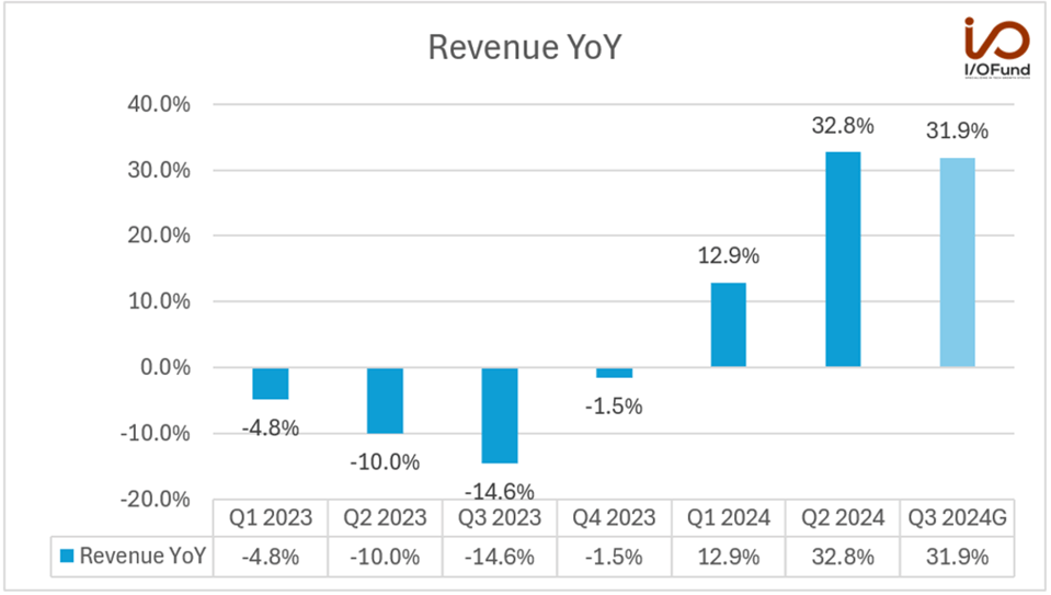 TSMC’s MoM growth can be lumpy, yet July month’s 38.3% YoY growth points to a positive start to the September quarter. The company guided for revenue of $22.4 billion to $23.2 billion, representing YoY growth of 31.9% at the midpoint.