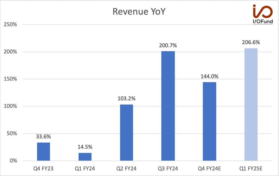 Next quarter will mark the highest quarter growth in Supermicro’s history, with guidance for 206.6%, an acceleration from the previous quarter’s growth of 144%. This is 590 bps higher than Super Micro’s previous record quarter for 200.7% growth.