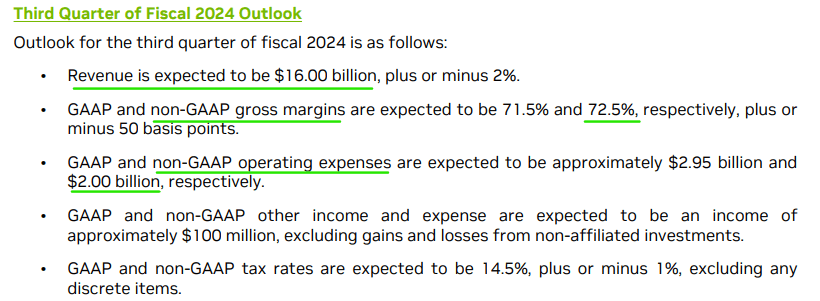 Additionally, Nvidia’s non-GAAP gross margin is projected to rise to 72.5% in Q3 FY2024. With rapid revenue growth and improving gross margins, Nvidia is set to deliver tons of operating leverage in the upcoming quarters.