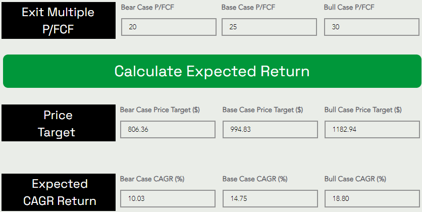 By 2028-29, I can see Nvidia rising to $995 per share at a CAGR rate of 14.75% based on an exit multiple of ~25x P/FCF.
