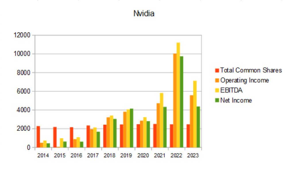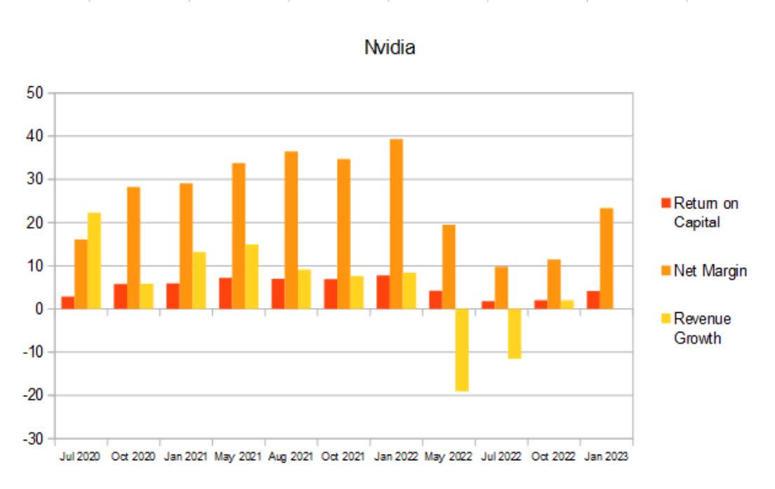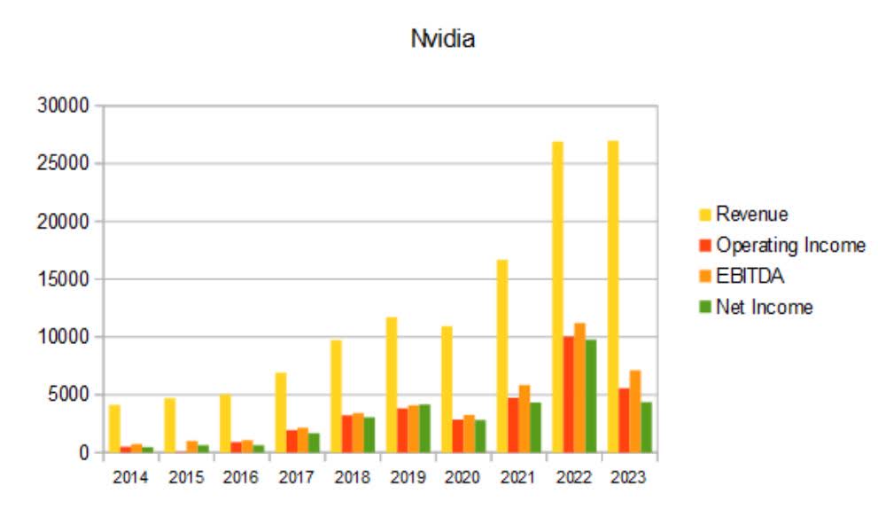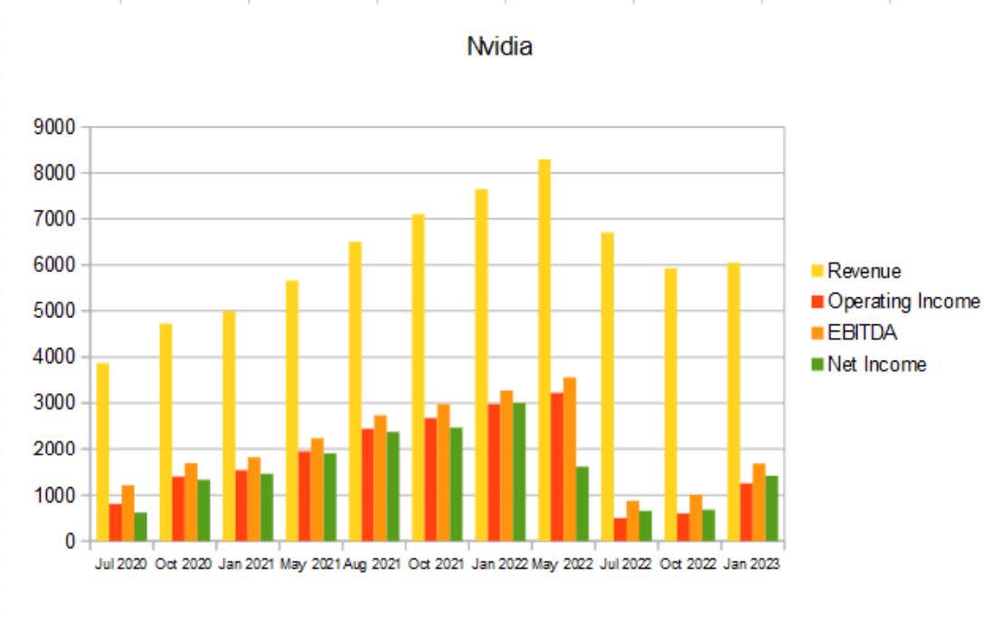 Their quarterly financials clearly shows the amazing growth the company was experiencing pivoted in mid-2022. Nvidia took a significant hit to its financials but has been recovering for the last three quarters.