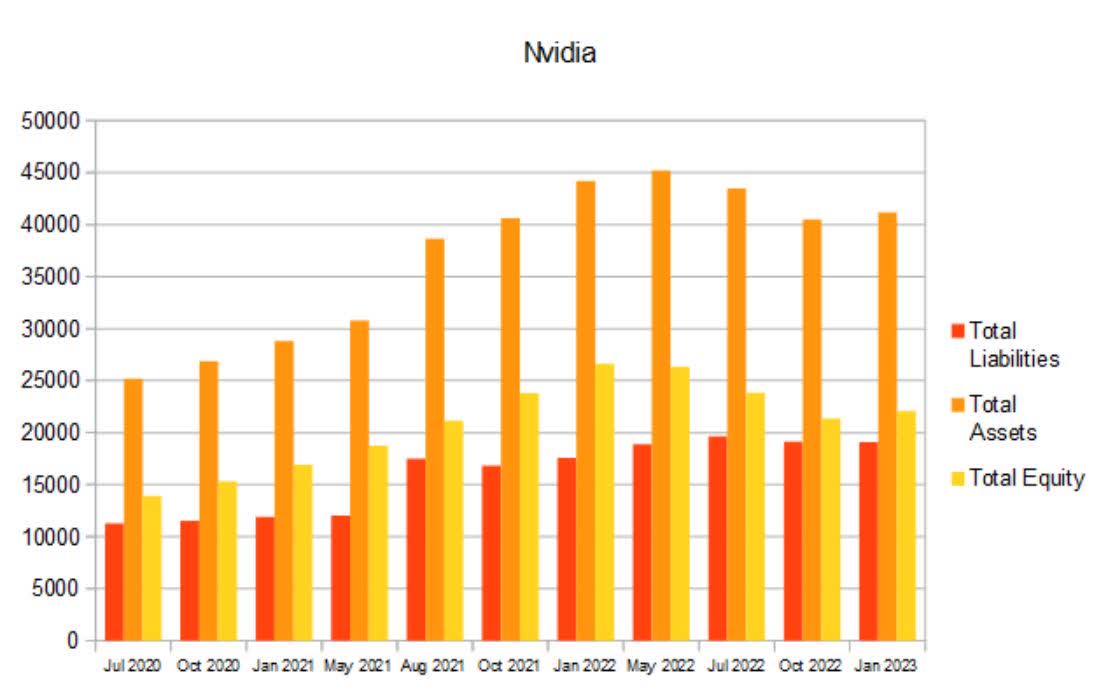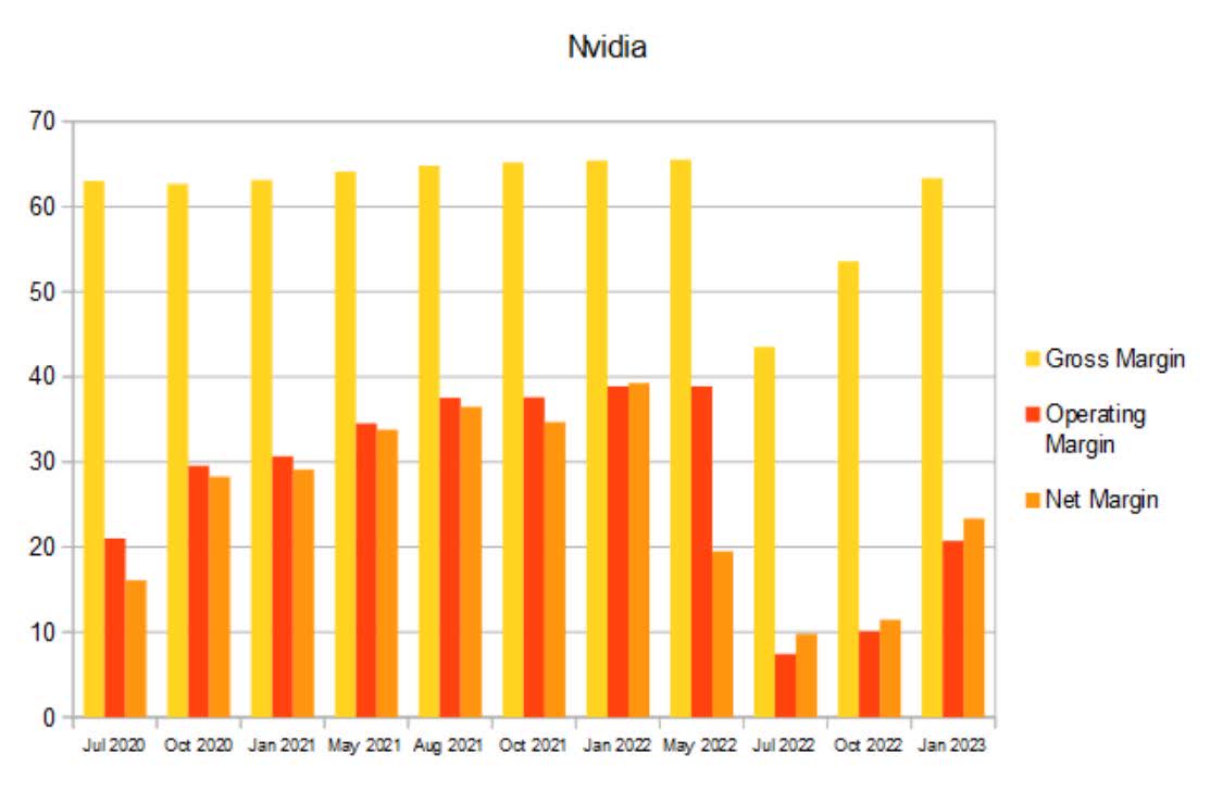 Before we dive into the charts I should inform you that Nvidia’s annual statements are from January to January. This means the global pandemic and chip shortage that both happened in 2020, shows up on the following charts as affecting their 2021 numbers. This also explains why 2023 shows up on these charts, it covers Jan 2022 to Jan 2023.