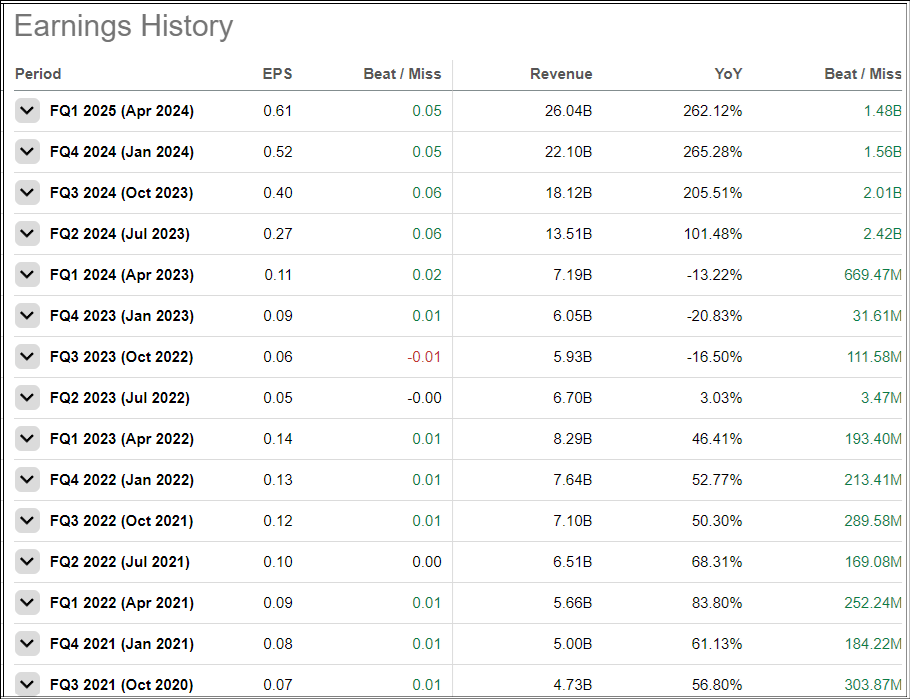 Nvidia’s Earnings History (Seeking Alpha)