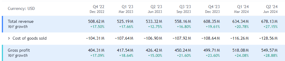 - Its Q2 2024 performance was very strong and indicative of a consistent and sustainable growth trajectory.