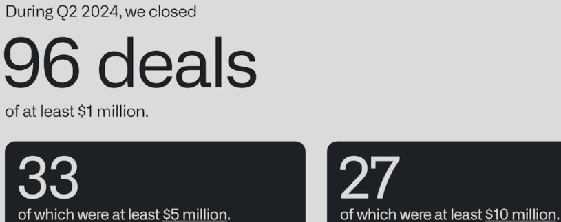 Palantir has partnerships with both government and private organizations demonstrating how competitive its two major projects are, and this bodes well for its growth. These strategic partnerships not only ensure a stable market share but also consistent revenue streams. The company’s upward revisions of annual projections and win of new contracts are indicative of its sustained momentum and long-term growth potential. To demonstrate how competitive and sustainable the company is, in its Q2 2024, it closed 96 deals of at least $1 million.