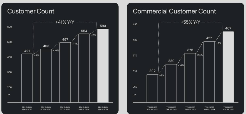 Alongside the federal business section, the company has also achieved notable progress in the commercial sector with its overall commercial revenue rising by 33% to $307 million and the remaining performance obligation [RPO] growing by 41% to $1.4 billion YoY in Q2 2024. Its commercial customers are highly diversified, alluding to a broad risk distribution in this promising market segment.