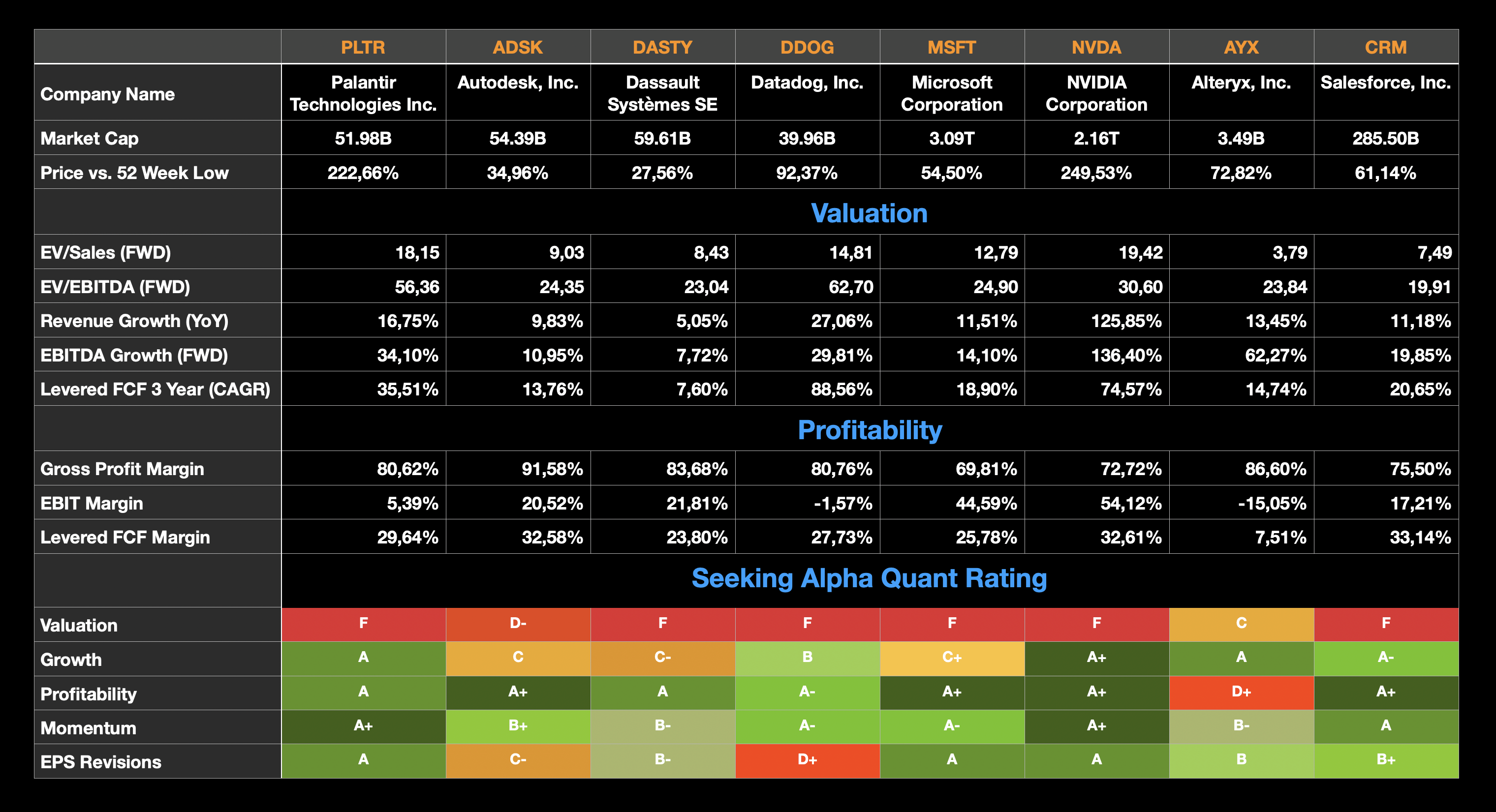Even Nvidia, which has a $2.16 trillion valuation, currently sits at an EV/EBITDA ratio of 30.60x forward with triple-digit ratios in terms of revenue and EBITDA growth. However, Palantir’s valuation could soon become more reasonable as EBIT margins increase and finally move closer to the software industry average.