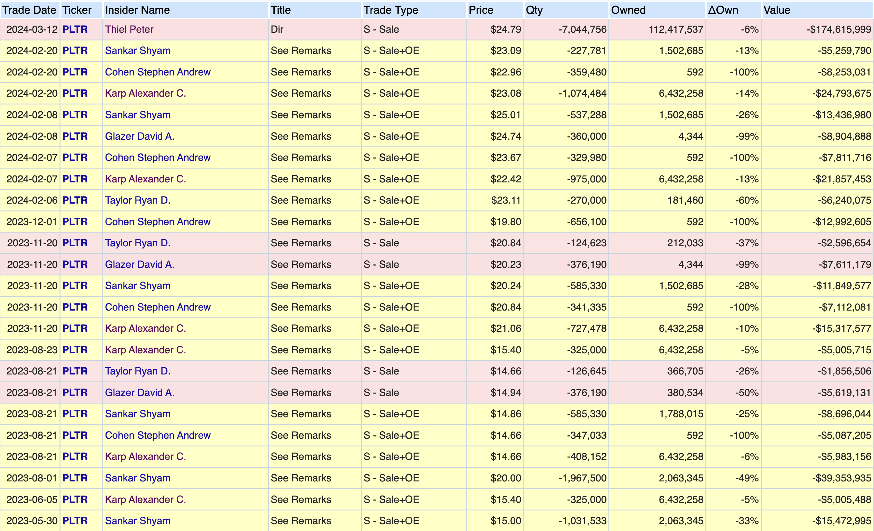 Since in our view insiders use stock-based compensation almost as a salary, it is quite essential to the profitability/functioning of the organization to retain talent as a software company. While CEO Alex Karp’s shares are stagnant, he still exercises options and sells shares for tens of millions of dollars a year, which has a dilutive effect for existing shareholders. On the other hand, share-based compensation has gradually declined over the past 2 years, while free cash flow has increased, which we see as a very positive development.