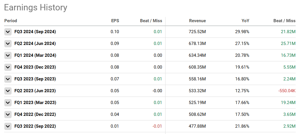 Beating already-inflated expectations on both the top and bottom lines, the company managed to actually re-accelerate sales growth, even as the PLTR’s scale has grown enormously over the last few years: