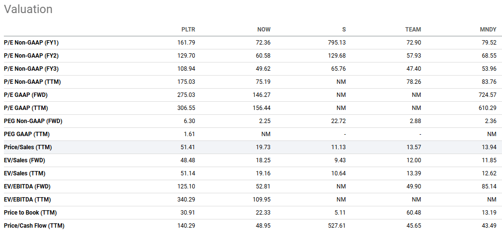 Even when you compare PLTR vs. high growth, high margin peers, the stock is in a weight class of its own when it comes to the multiples, particularly on sales: