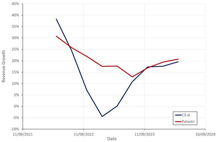 Figure 2: Palantir and C3.ai Revenue Growth (source: Created by author using data from company reports)