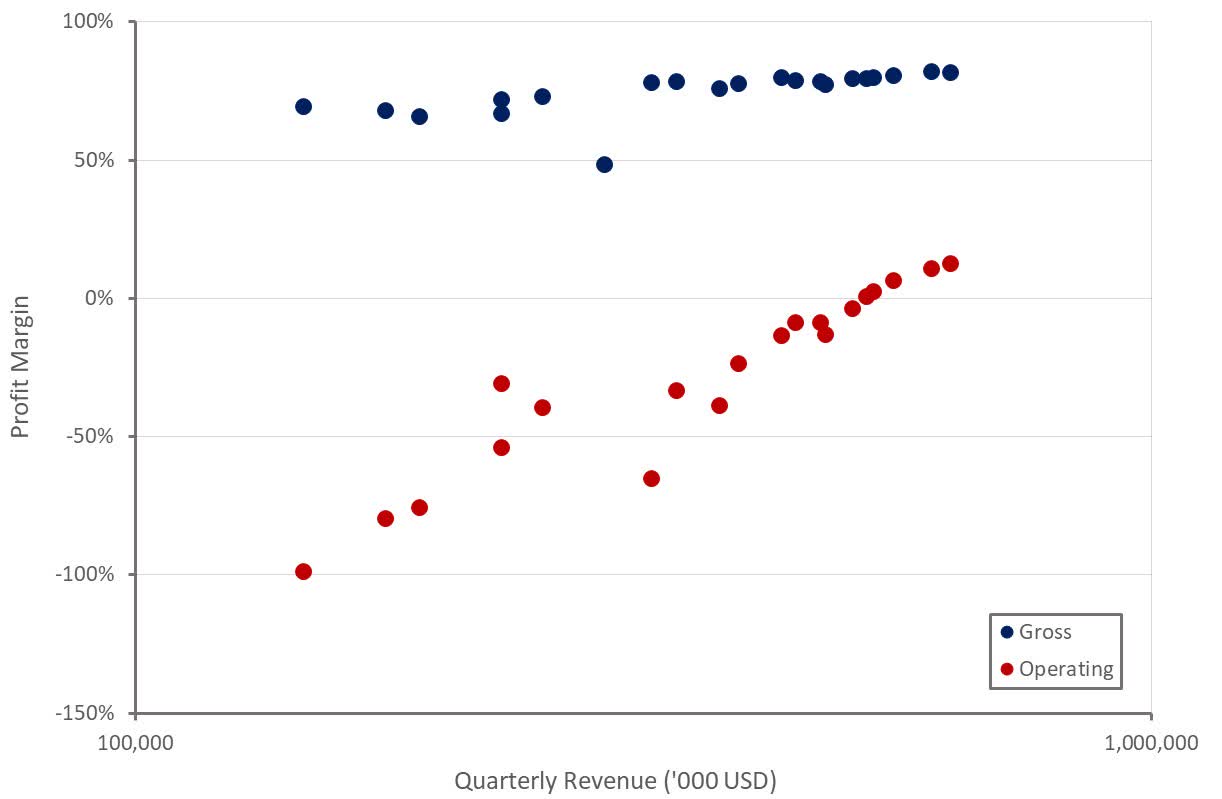 Figure 7: Palantir Profit Margins (source: Created by author using data from Palantir)