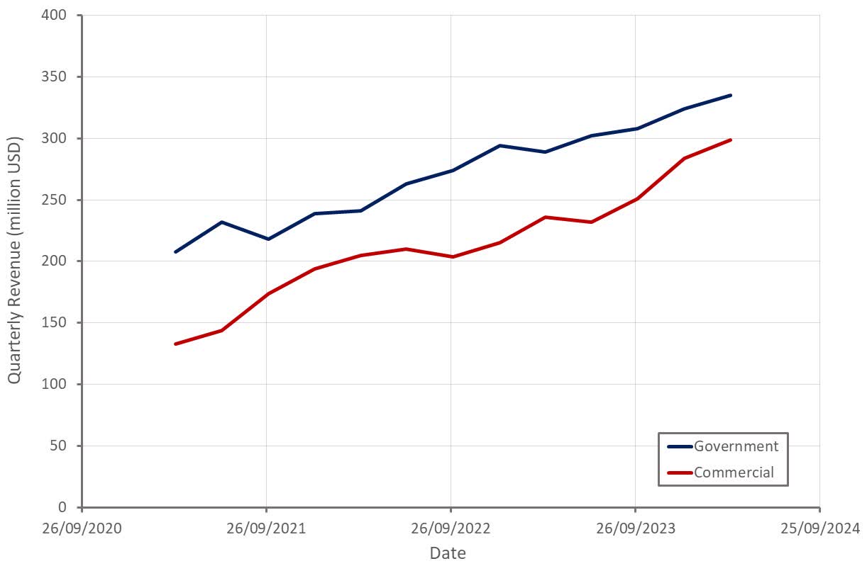 Figure 3: Palantir Revenue by Customer Segment (source: Created by author using data from Palantir) Table 1: Revenue Growth by Customer Segment (source: Created by author using data from Palantir)