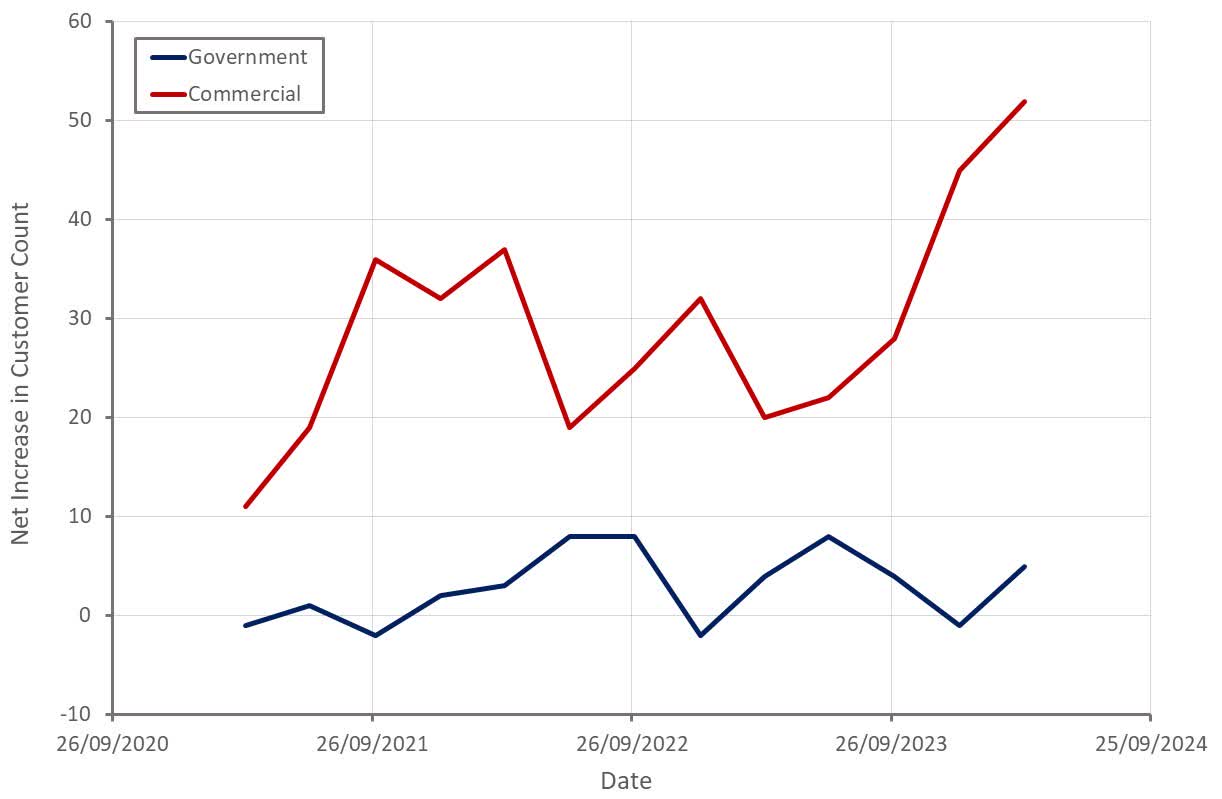 Figure 6: Palantir Customer Growth (source: Created by author using data from Palantir)