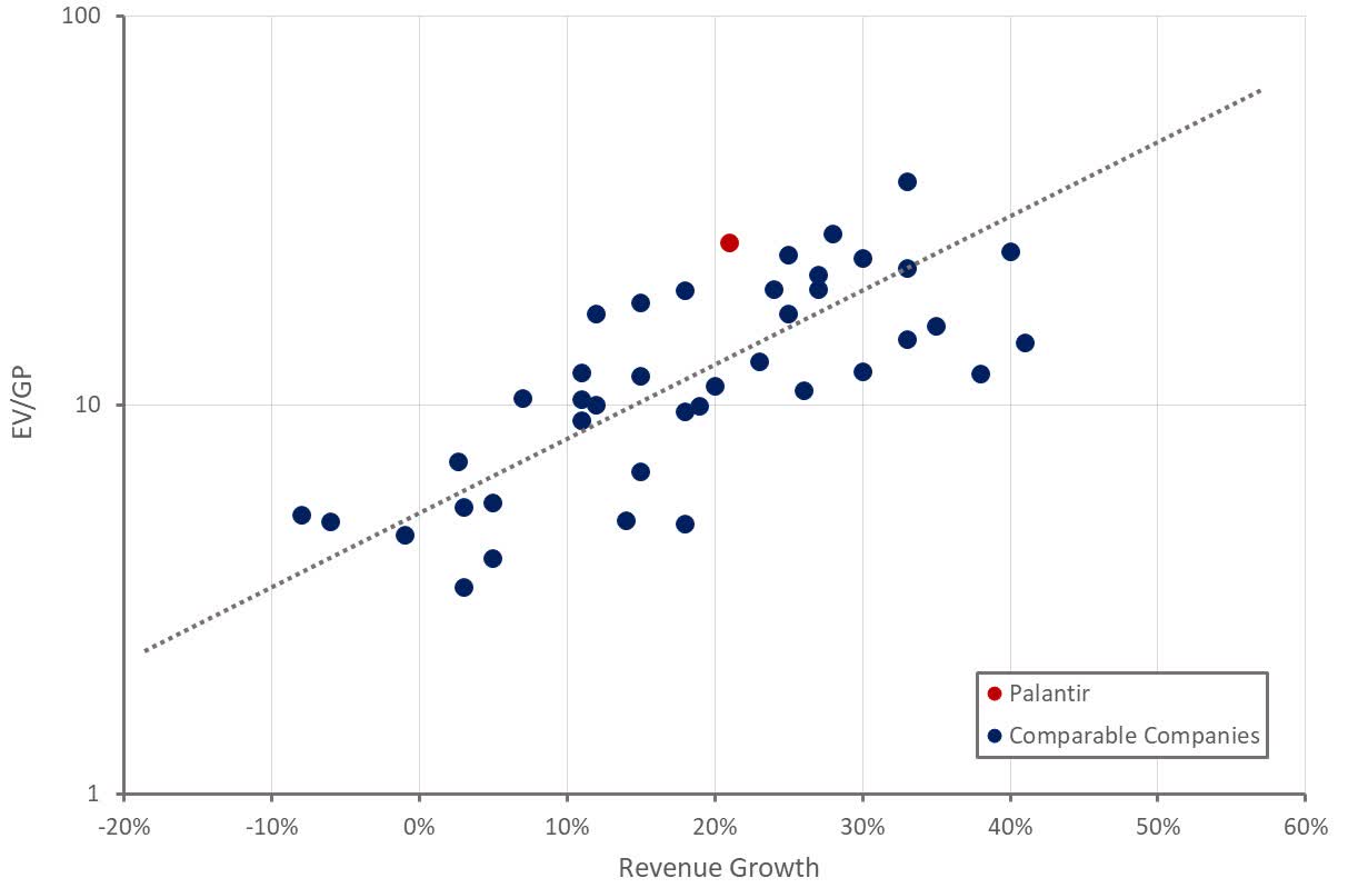 - There is uncertainty surrounding enterprise software demand due to mixed results from other software companies. Palantir’s exposure to AI may be insulating it from this.