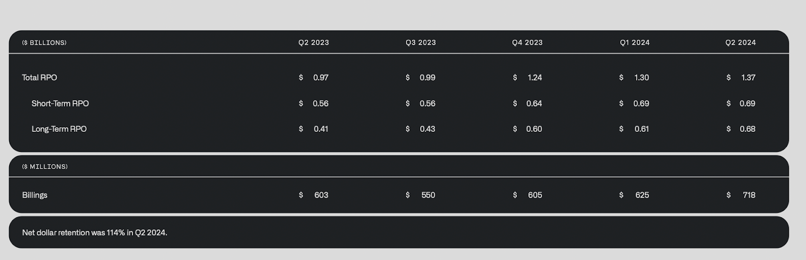 The company saw remaining performance obligations (‘RPOs’) grow 41% YoY to $1.37 billion, including short-term RPOs grow 23% YoY. Billings grew 19% YoY. Some investors view RPO growth (especially cRPO growth) as a potential leading indicator of future revenue growth, but this metric may be sending mixed signals relative to the aggressive customer count growth.