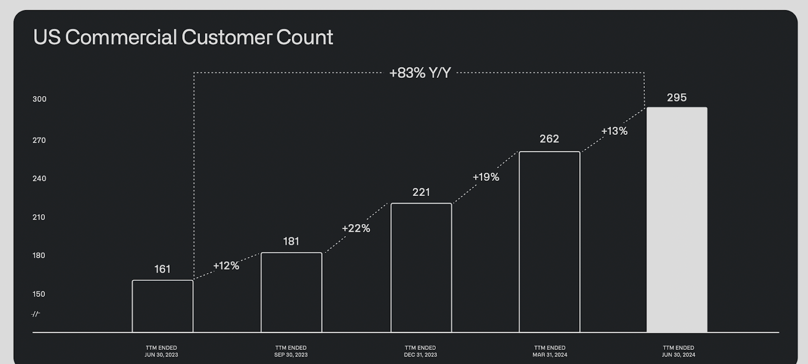 The company notably saw US commercial customers grow 83% YoY, again potentially indicating continued strong growth moving forward.
