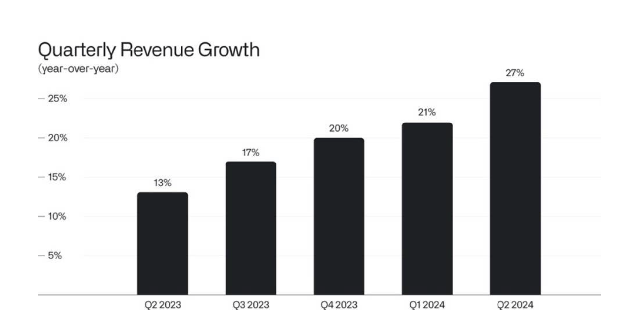 - The Company saw revenue growth accelerate sequentially for the fourth straight quarter to 27% YoY growth.