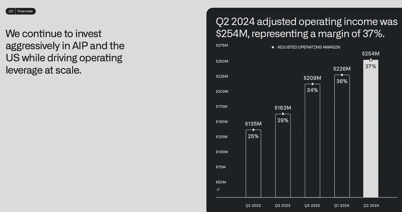 The company remained highly profitable, with adjusted operating income growing 88% YoY to $254 million, exceeding guidance of between $209 million and $213 million.