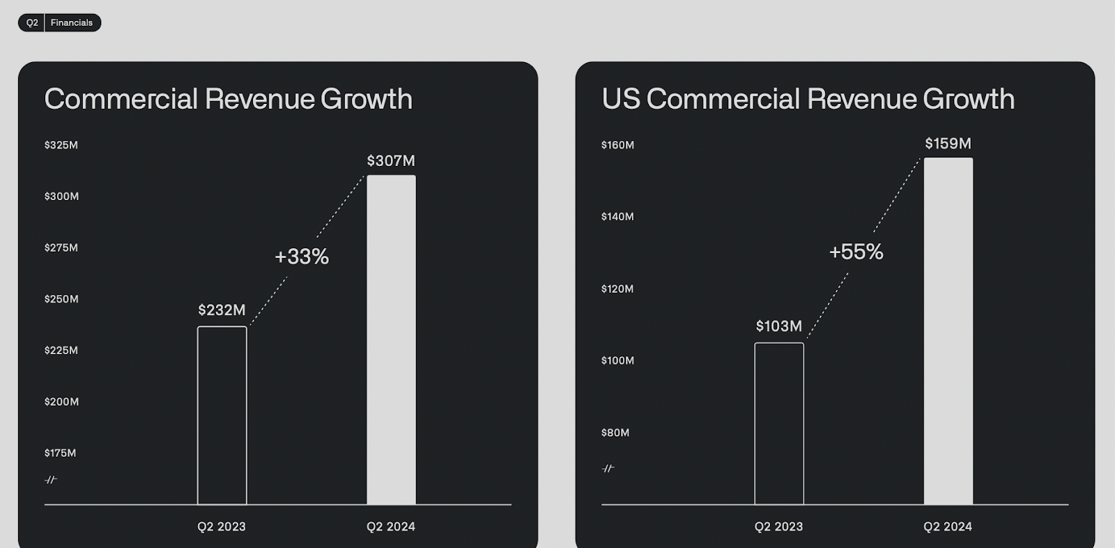 The company saw particular strength in its commercial business, with commercial revenues growing 33% YoY to $307 million and US commercial revenues growing 55% YoY to $159 million.